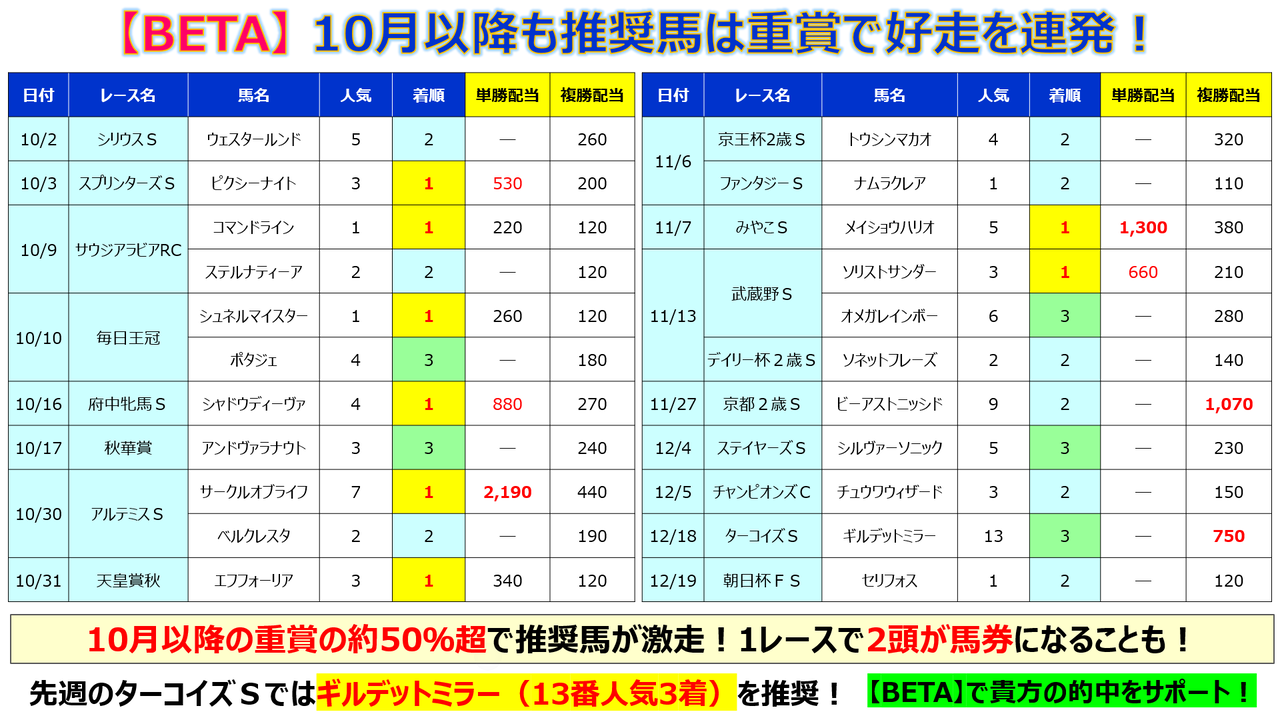 タグ データ 軸馬 穴馬 中山 芝2500m G1 有馬記念2021 2021 注目データ. 有馬記念 2021 予想オッズ出走予定馬騎手枠順競馬ナンデ 有馬記念 2021 競馬ナンデ想定班 2021年12月 6日 2237 有馬記念2021 中山競馬場芝2500M 日程20211226 賞金順出走可能頭数16頭 予想オッズからは馬券をどこから買おうか迷いそう そこでひとつ 新しい買い方を試してみませんか 最新の能力指数を使った買い方です 最近出てきた うまとみ. まず有馬記念2021各馬の特性に関しては先にご紹介した記事で想定される予想オッズ17番人気の馬たちの特徴を書いたのでそれを前提にお話しをします 波乱荒れる人気馬が凡走する 要はこういうことですよね いくら穴馬がいつも以上に頑張っても人気馬が普通に能力発揮できてしまっては波乱にはならないわけです 波乱の余地として人気馬の凡.